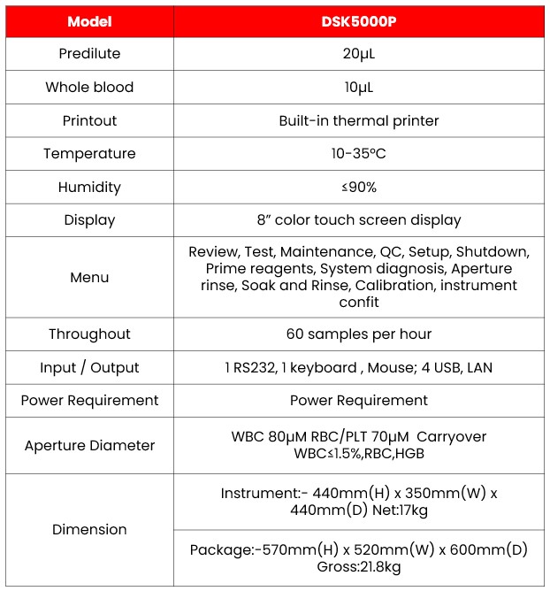 - 3-part differentiation of WBC •Double Chambers for WBC and RBC/PLT •Throughout: 60 samples per hour •Intelligent reagent management function: Reagent information and residual display •Strong data management system •Multilingual for option •LCD with high resolution •Bar code scanner ( optional) •Reagent alarm system ( optional )