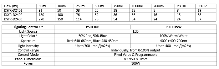 7.The ceiling of the unit can be upgraded and fitted with LED lighting kit for cultivation of phototrophic organisms. Mono cool white, or Red & Blue dual light colors are possible and the intensity of each color can be independently controlled and programmed to simulate day/night cycles, perfect for plant cell culture.