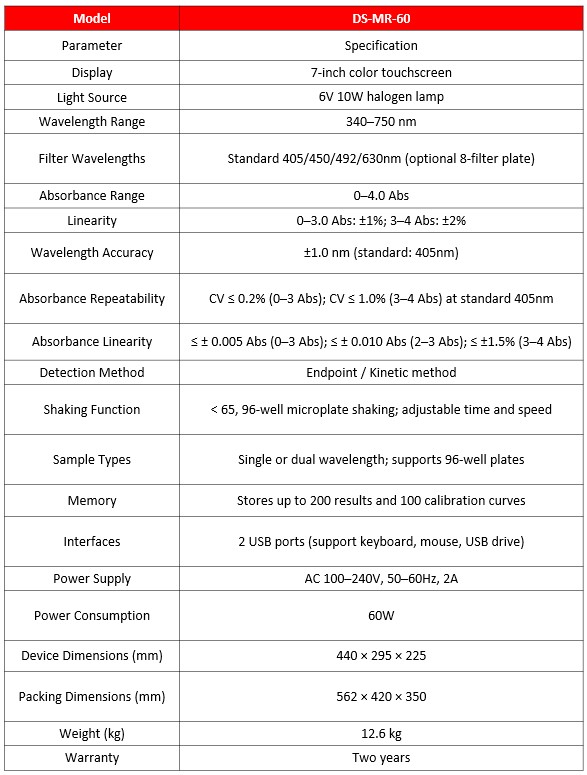 - Filter System: Standard 4-filter plate (405, 450, 492, 630nm), supports 8-filter plate expansion; easy and tool-free filter replacement.