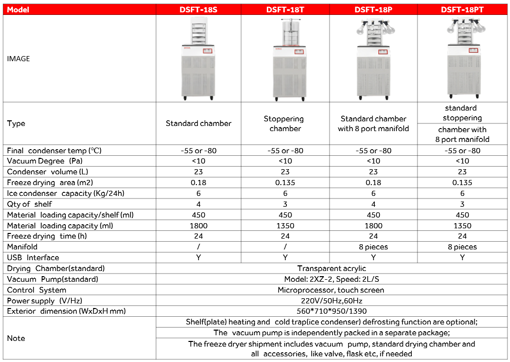 3.Condenser temperature of -80℃ is optional (Except bentch top models);