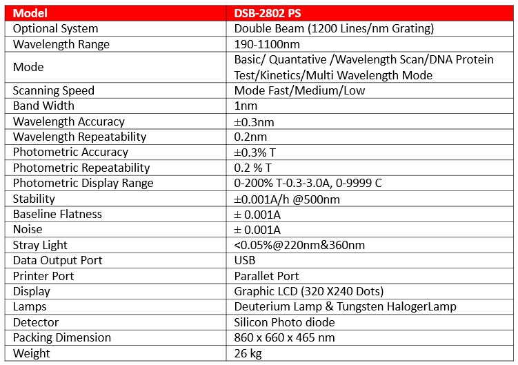 Double Beam Microprocessor UV-VIS Spectrophotometer DSB-2802 PS