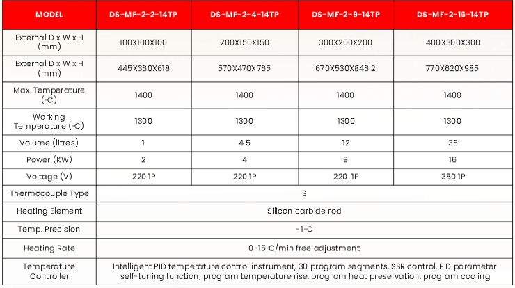 Max temperature RT~1400℃
