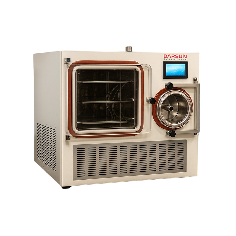 1.Situ freeze-drying technology is one of advanced international constructer design which avoid the contamination during materials transfer and realize the dry sublimation automatically. Pilot freeze dryer is with rack heating programmable function and memory freeze-drying curve which convenient users to get the freeze-drying production technology.