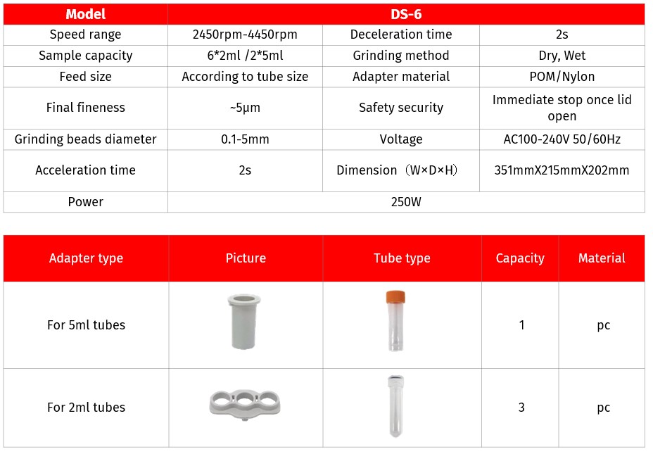 DS-6 sample Homogenizer is a small size lab instrument, suit for various of samples grinding. Touch screen display, easy to operate: High speed, bringas high efficiency. Commonly used for sample pretreatments in industries of biology, chemistry, pharmacology, minerals, medicine, etc.