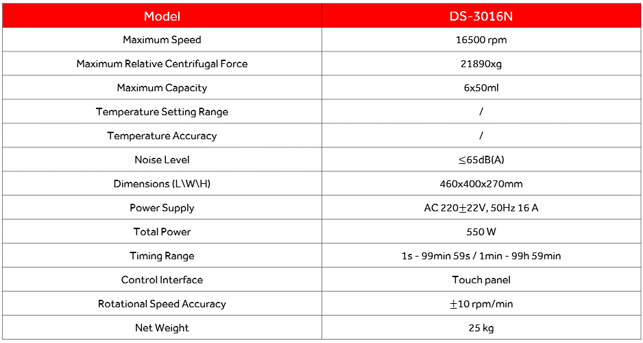 - DS 3016N is widely used in molecular biology, molecular chemistry and PCR laboratories, etc., it is a good helper for bacteria isolation, and ca n be equipped with a variety of ca pa city rotors, which is super cost -effective.